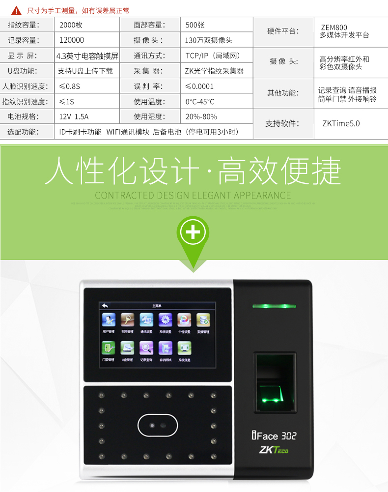 iface302人臉混合識(shí)別考勤機(jī)
