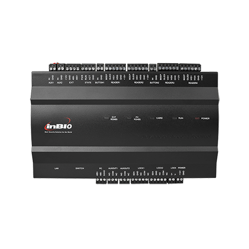 InBIio460四門控制器是全球第一款在硬件平臺(tái)/固件平臺(tái)/應(yīng)用軟件平臺(tái)將RFID與BIOMETRIC技術(shù)無(wú)縫整合, 采用32位400MHZ高速并行CPU,嵌入式Linux操作系統(tǒng),該控制器設(shè)計(jì)為TCP/IP和RS485雙通訊模式,并支持復(fù)雜網(wǎng)絡(luò)的跨網(wǎng)段、跨網(wǎng)關(guān)通訊,與后臺(tái)管理系統(tǒng)連接,通過(guò)它可以將輸入設(shè)備、輸出設(shè)備和讀卡器連接起來(lái)組成一個(gè)完整的控制系統(tǒng)。InBIO 160單門控制器采用行業(yè)公認(rèn)要求最高的防塵、防靜電ABS+PC外殼,經(jīng)歷了業(yè)界最嚴(yán)格的工業(yè)標(biāo)準(zhǔn)實(shí)踐和最苛刻條件的測(cè)試,性能穩(wěn)定卓越。