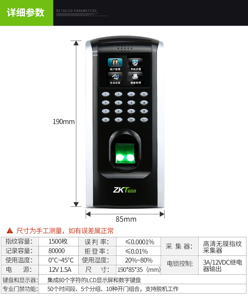 • 產品描述:ZKTECO熵基指紋門禁中控F7安防中控F7、中控智慧是中國時間管理、安全管理、身份識別系統解決方案領袖級企業,是全球著名的生物識別產品、解決方案及服務提供商